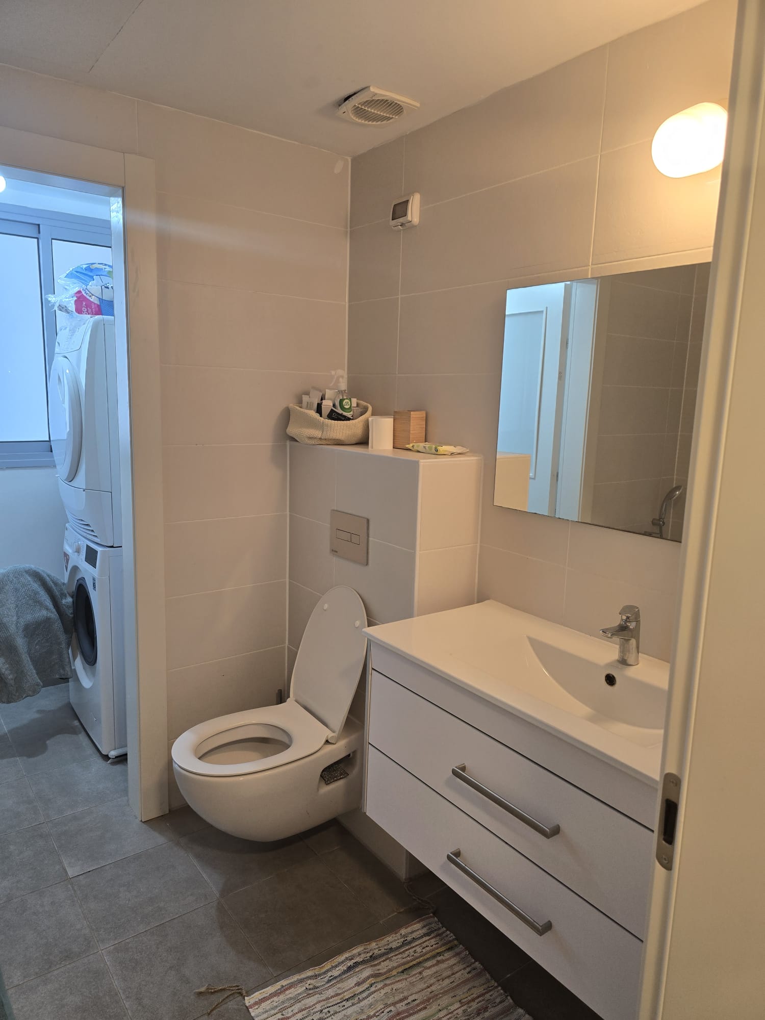 Adding to the convenience is a washing machine paired with a dryer, ensuring your wardrobe remains fresh no matter the length of your stay. For those driving in, private parking is available, providing a secure spot for your vehicle as you venture out to explore the delightful attractions Netanya has to offer.