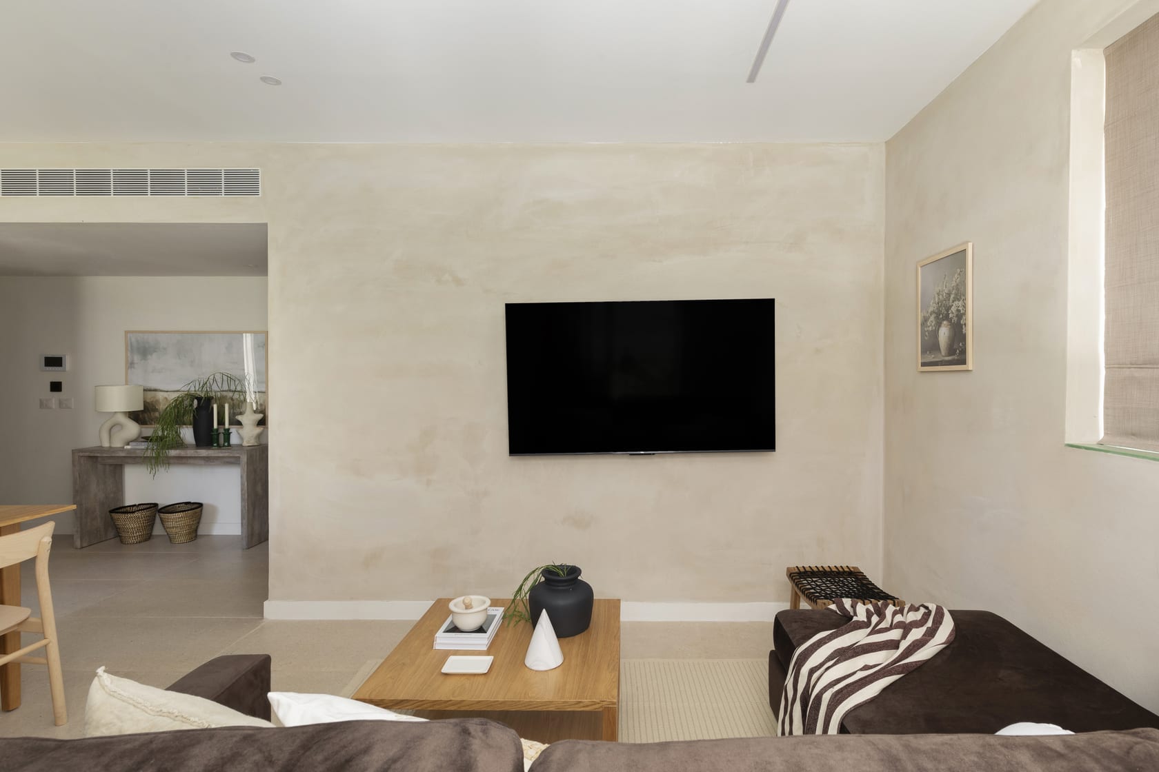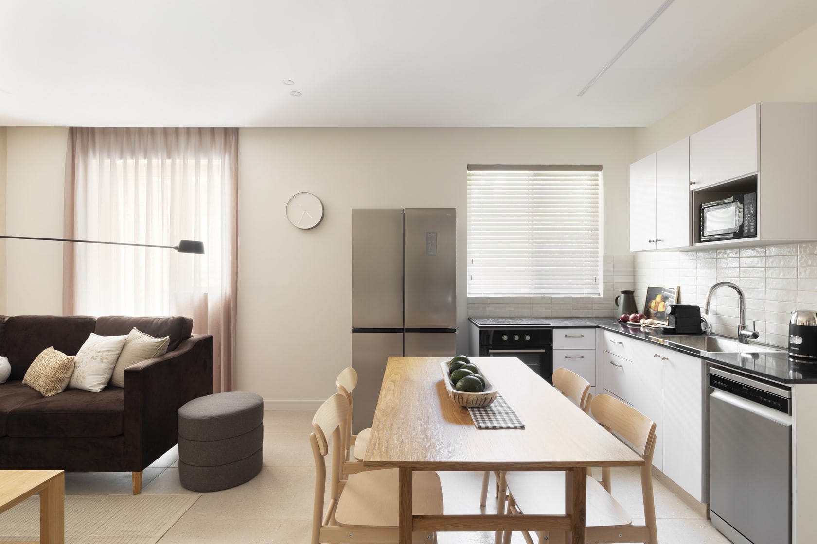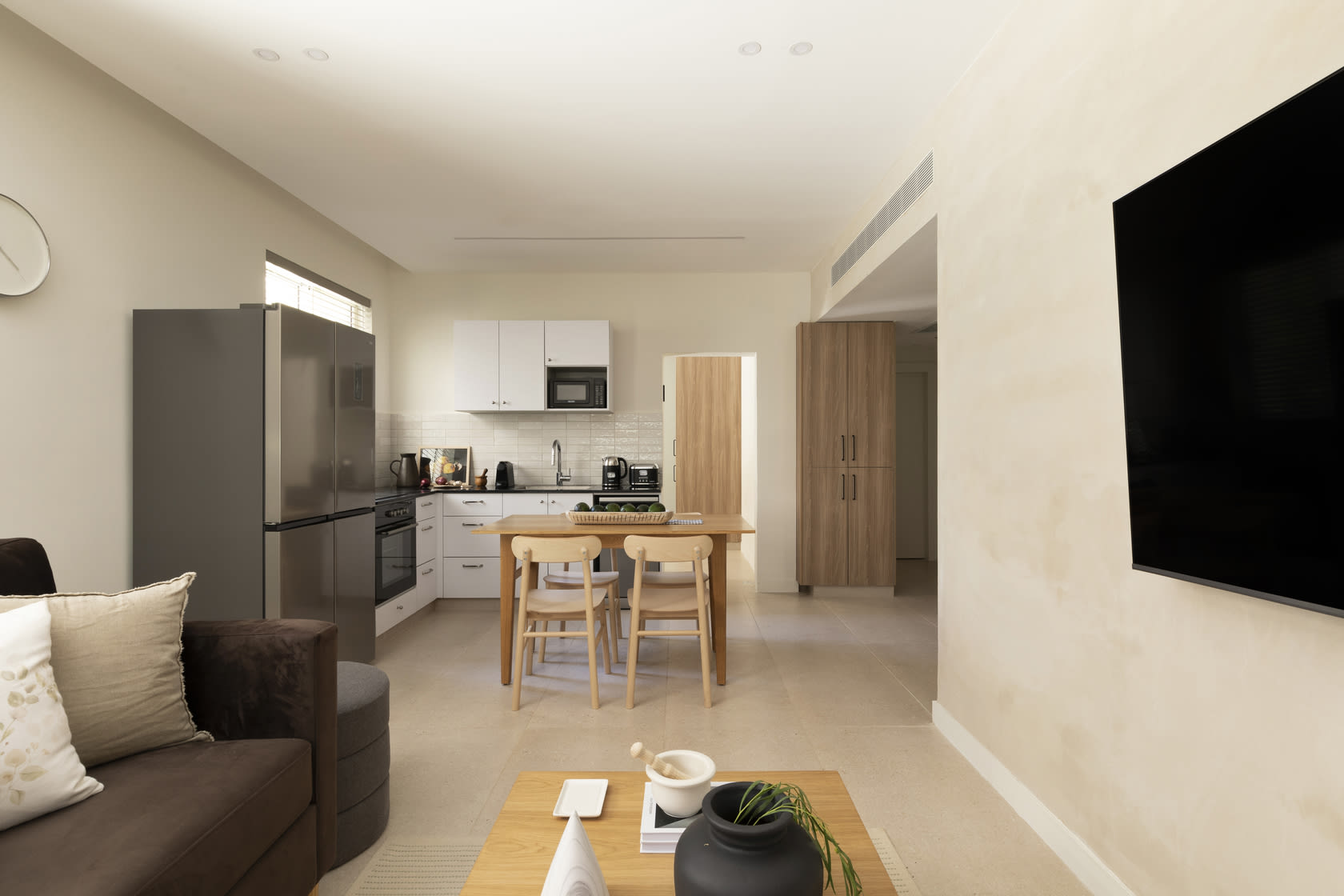This exceptionally large apartment includes two bedrooms, two bathrooms, and two living areas, providing generous room for families or groups. Each apartment also includes a secure shelter room (mamad), offering both comfort and peace of mind. Flooded with natural light, the interiors are both airy and inviting, creating a bright and tranquil atmosphere.