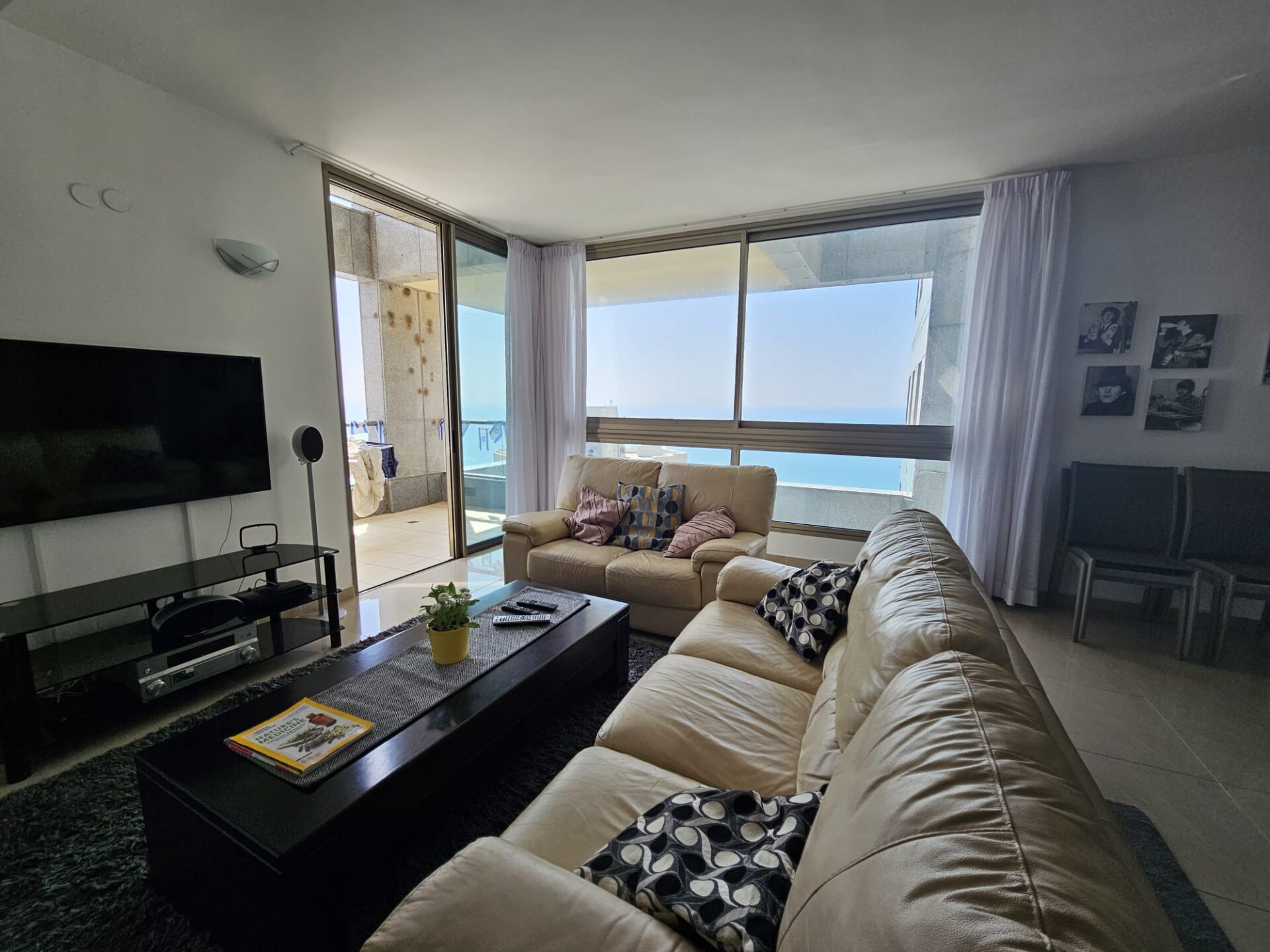 Welcome to this beautiful 3-bedroom apartment situated mere steps from the pristine beaches of Netanya. Here, breathtaking ocean vistas are part of your everyday scenery, complemented by top-tier amenities to enrich your stay. Nestled on the first floor of an elegant edifice, this spacious apartment is easily accessible via elevator, blending convenience with sophistication.